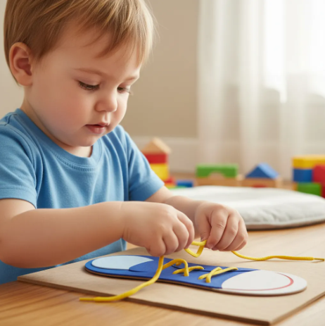 Para crianças a partir de 3 anos, inclusive portadores de necessidades especiais. Ensina a dar laço e estimula a coordenação visomotora, a direcionalidade e o controle do tônus muscular.